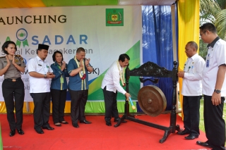 Peresmian Desa Suka Makmur sebagai Desa Sadar BPJS Jaminan Sosial Ketenagakerjaan ditandai dengan pemukulan Gong oleh Sekda Langkat H. Indra Salahudin mewakili Bupati Langkat H. Ngogesa Sitepu SH yang saksikan oleh Kadisnaker Langkat H. Syaiful Abdi, sejumlah Kepala SKPD dijajaran Pemkab. Langkat, unsur TNI/Polri dan undangan lainnya. (Diskominfo)
