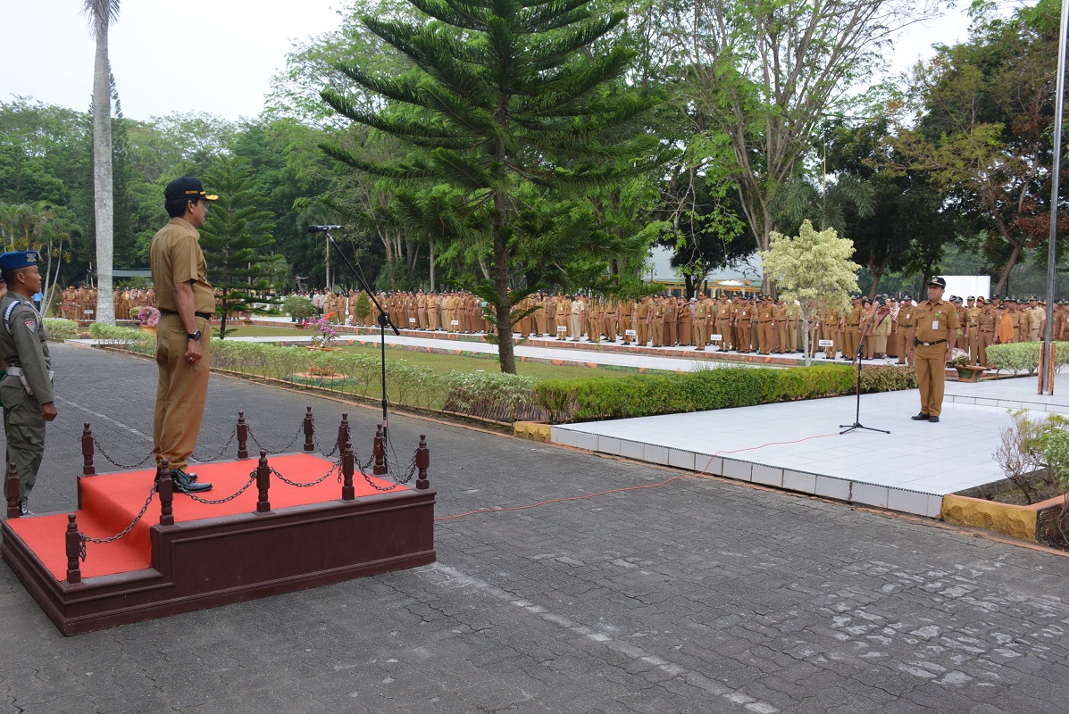 Bupati Langkat Terbit Rencana PA melalui Asisten I Tapem Drs Abdul Karim MAP, memimpin apel gabungan Aparatur Negri Sipil (ASN) di jajaran Pemerintah Kabupaten (Pemkab) Langkat, di Halaman Kantor Bupati Langkat, Stabat, Senin (11/3).